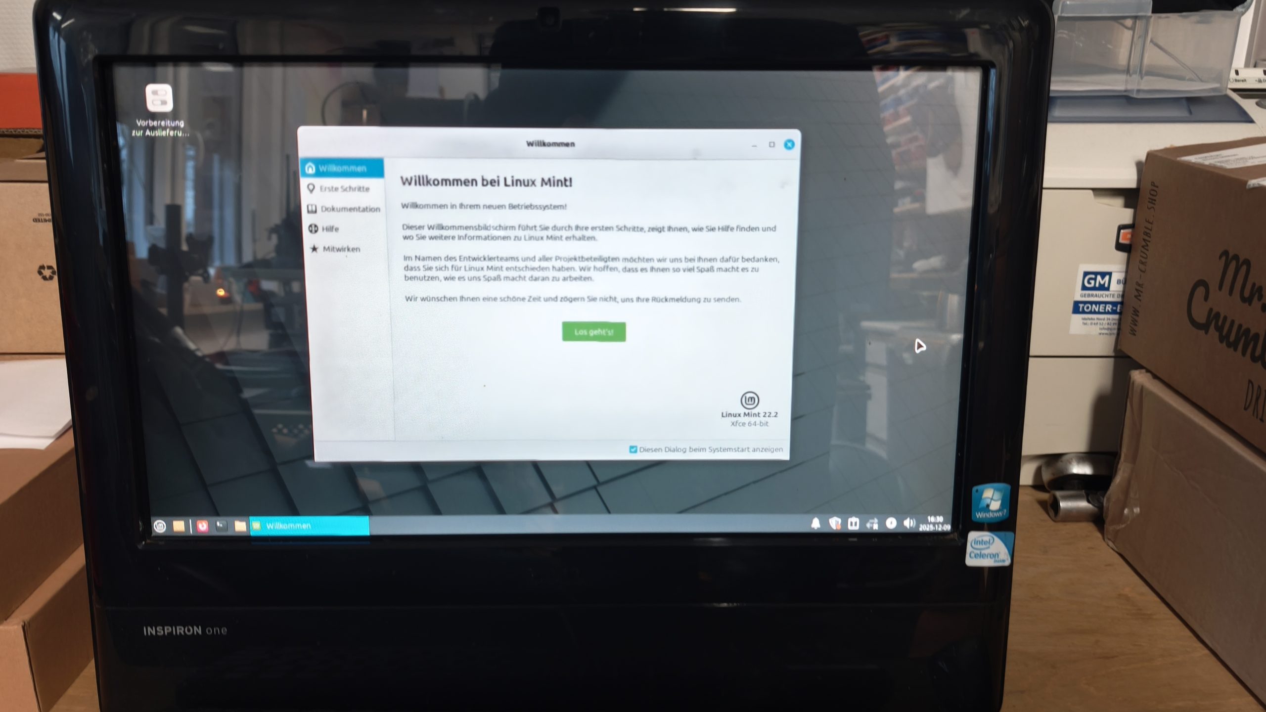 Hier wurde im Auslieferungszustand Wind**s 7 HOME betrieben, ein späteres W10 hat das System natürlich völlig überfordert und es hat dem Kunden kein Spaß mehr gemacht. Mit Linux26 sollte es nun wieder Freude machen und schnelles Arbeiten und Surfen gewähren.